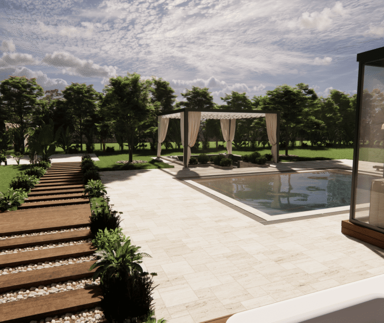 We designed two adjacent villas within the Göcek Portville complex to be merged into a single villa. In bringing this design to life, we highlighted the color turquoise, which is our clients’ favorite, in the common areas. Our villa includes a working office, an elevator, a kitchen, an open-plan living and dining area, guest bedrooms, and a master bedroom. The villa, meticulously designed down to the smallest detail, also features a spacious garden. The yacht feel, one of the project’s starting points, is achieved through the use of wood, marble, brass, and oval details in the flooring and interior spaces. These details also shape the identity of the house.